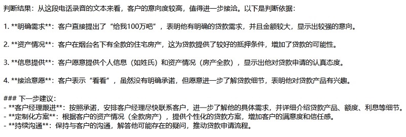 精準捕捉客戶對話中的關(guān)鍵詞與情緒傾向,識別潛在需求與隱性顧慮,為后續(xù)溝通策略提供數(shù)據(jù)支持。
