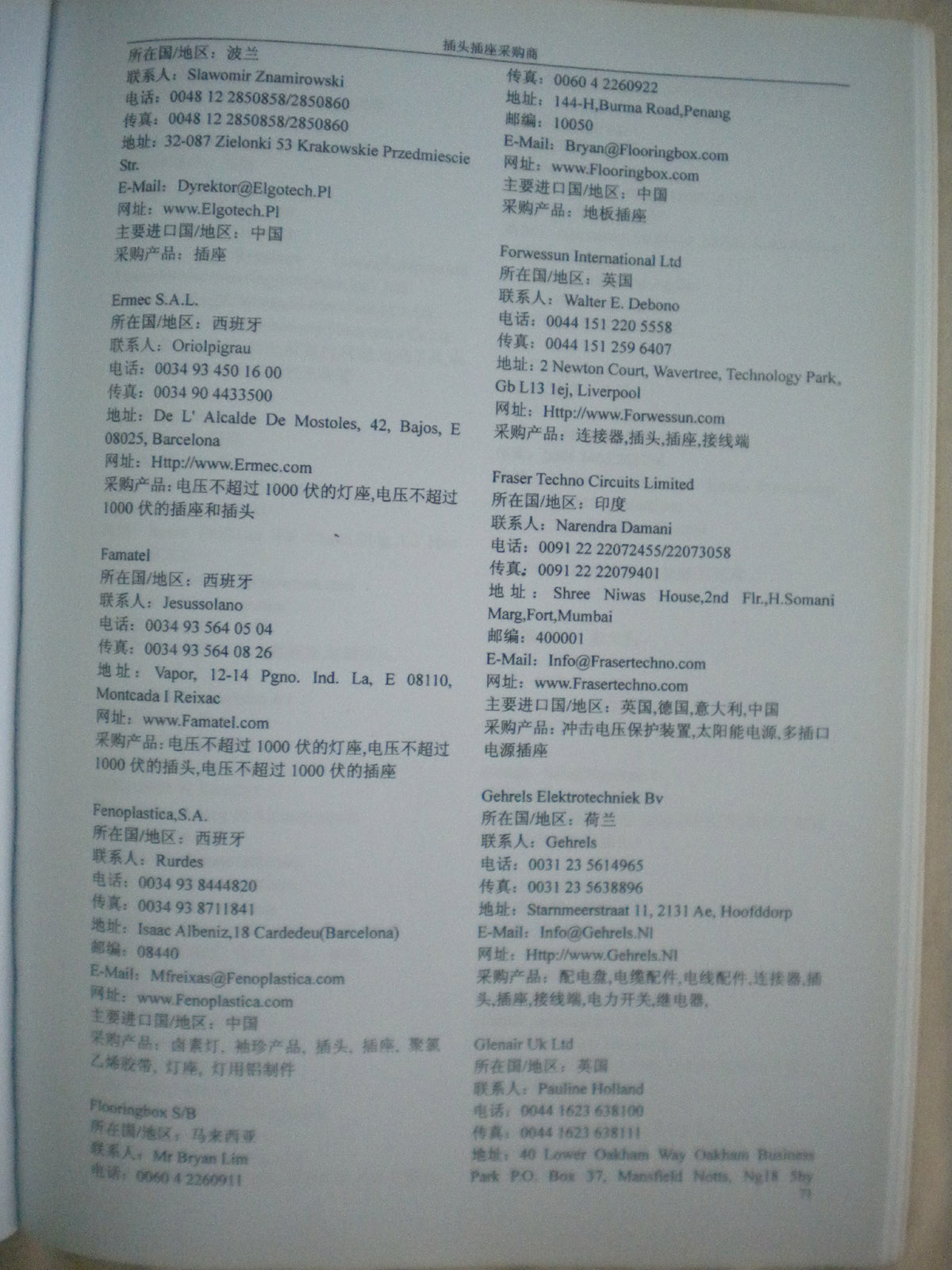 書刊簡(jiǎn)介:《全球采商黃頁(yè)》系列叢書是由全球最活躍的專業(yè)買家及重要國(guó)際性展會(huì)的到會(huì)采購(gòu)商名片信息匯編而成,包含三十多個(gè)行業(yè)分類,匯集了各類產(chǎn)品的買家信息。其中收錄的每家采購(gòu)商信息均是我們通過(guò)與買家面對(duì)面的登記整理收集而成,采購(gòu)意向明確,針對(duì)性強(qiáng)。為了確保信息的準(zhǔn)確性和時(shí)效性,我們定期進(jìn)行跟進(jìn)、回訪、補(bǔ)充及更新工作。每家采購(gòu)商信息包括國(guó)別、公司名稱、聯(lián)系人、地址、電話、傳真、電郵、網(wǎng)址、采購(gòu)產(chǎn)品等詳細(xì)內(nèi)容,每?jī)?cè)《黃頁(yè)》約有兩千家左右的采購(gòu)商信息。在當(dāng)前國(guó)際出口形勢(shì)日趨嚴(yán)峻的環(huán)境下,如何降低成本開(kāi)拓國(guó)際市場(chǎng),是每個(gè)出口企業(yè)急需尋找的答案,我們相信通過(guò)我們10多年的外貿(mào)信息服務(wù)經(jīng)驗(yàn)和最新的國(guó)際買家資源服務(wù),將會(huì)為您拓展全球市場(chǎng)提供最直接有效的幫助。專業(yè)對(duì)口的買家信息一定會(huì)幫助貴公司打開(kāi)更廣闊的外貿(mào)市場(chǎng)!