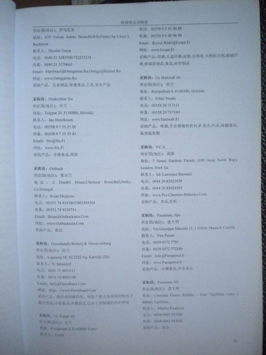 書(shū)刊簡(jiǎn)介:《全球采商黃頁(yè)》系列叢書(shū)是由全球最活躍的專(zhuān)業(yè)買(mǎi)家及重要國(guó)際性展會(huì)的到會(huì)采購(gòu)商名片信息匯編而成,包含三十多個(gè)行業(yè)分類(lèi),匯集了各類(lèi)產(chǎn)品的買(mǎi)家信息。其中收錄的每家采購(gòu)商信息均是我們通過(guò)與買(mǎi)家面對(duì)面的登記整理收集而成,采購(gòu)意向明確,針對(duì)性強(qiáng)。為了確保信息的準(zhǔn)確性和時(shí)效性,我們定期進(jìn)行跟進(jìn)、回訪、補(bǔ)充及更新工作。每家采購(gòu)商信息包括國(guó)別、公司名稱(chēng)、聯(lián)系人、地址、電話、傳真、電郵、網(wǎng)址、采購(gòu)產(chǎn)品等詳細(xì)內(nèi)容,每?jī)?cè)《黃頁(yè)》約有兩千家左右的采購(gòu)商信息。在當(dāng)前國(guó)際出口形勢(shì)日趨嚴(yán)峻的環(huán)境下,如何降低成本開(kāi)拓國(guó)際市場(chǎng),是每個(gè)出口企業(yè)急需尋找的答案,我們相信通過(guò)我們10多年的外貿(mào)信息服務(wù)經(jīng)驗(yàn)和最新的國(guó)際買(mǎi)家資源服務(wù),將會(huì)為您拓展全球市場(chǎng)提供最直接有效的幫助。專(zhuān)業(yè)對(duì)口的買(mǎi)家信息一定會(huì)幫助貴公司打開(kāi)更廣闊的外貿(mào)市場(chǎng)!