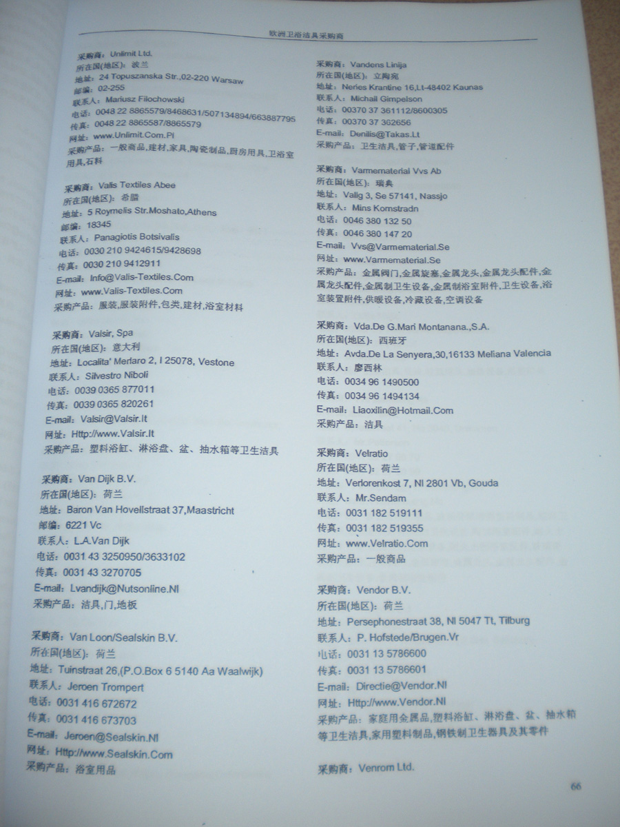 書刊簡介:《全球采商黃頁》系列叢書是由全球最活躍的專業(yè)買家及重要國際性展會的到會采購商名片信息匯編而成,包含三十多個行業(yè)分類,匯集了各類產(chǎn)品的買家信息。其中收錄的每家采購商信息均是我們通過與買家面對面的登記整理收集而成,采購意向明確,針對性強。為了確保信息的準確性和時效性,我們定期進行跟進、回訪、補充及更新工作。每家采購商信息包括國別、公司名稱、聯(lián)系人、地址、電話、傳真、電郵、網(wǎng)址、采購產(chǎn)品等詳細內(nèi)容,每冊《黃頁》約有兩千家左右的采購商信息。在當前國際出口形勢日趨嚴峻的環(huán)境下,如何降低成本開拓國際市場,是每個出口企業(yè)急需尋找的答案,我們相信通過我們10多年的外貿(mào)信息服務經(jīng)驗和最新的國際買家資源服務,將會為您拓展全球市場提供最直接有效的幫助。專業(yè)對口的買家信息一定會幫助貴公司打開更廣闊的外貿(mào)市場!