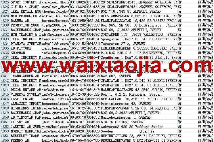 瑞典采購商黃頁包括:企業(yè)名稱、電子郵箱、聯(lián)系電話、傳真、聯(lián)系地址、聯(lián)系人、郵編等信息。