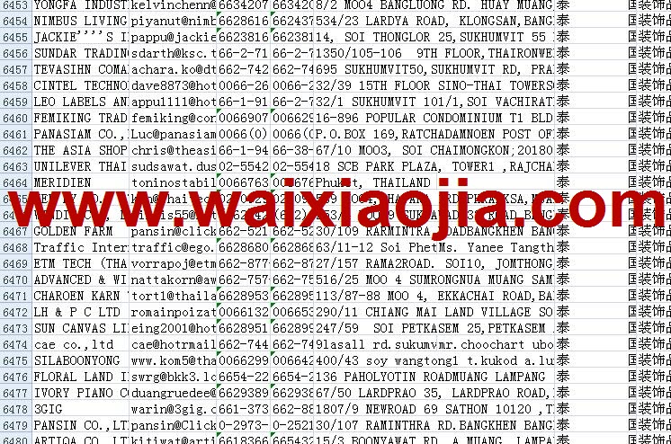 泰國采購商名單數(shù)據(jù)為Excel格式,信息可任意修改、復(fù)制、打印、導(dǎo)出及導(dǎo)入到傳真、郵件群發(fā)等軟件中,無任何限制。