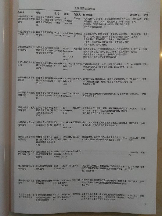 最新日本在華企業(yè)黃頁主要收錄了日本在中國境內(nèi)的獨(dú)資、合資、合作經(jīng)營等類型的企業(yè)通信黃頁,日本外商投資企業(yè)黃頁內(nèi)容有:企業(yè)名稱、地址、電話、傳真、電子郵箱、經(jīng)營范圍、注冊資金等;日資企業(yè)黃頁都是一些國際上的知名品牌企業(yè)在大陸地區(qū)設(shè)立的分公司及辦事機(jī)構(gòu),這類企業(yè)經(jīng)濟(jì)實(shí)力、技術(shù)實(shí)力與品牌效應(yīng)都比較強(qiáng),與這類企業(yè)開展合作業(yè)務(wù)是許多國內(nèi)企業(yè)夢寐以求的事情,因此在華日資企業(yè)名單是各個(gè)國內(nèi)企業(yè)提高銷售業(yè)績必備的參考工具!