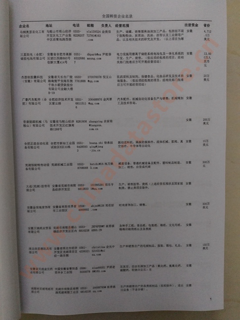 最新韓國在華企業(yè)黃頁主要收錄了韓國在中國境內(nèi)的獨(dú)資、合資、合作經(jīng)營等類型的企業(yè)通信黃頁,韓國外商投資企業(yè)黃頁內(nèi)容有:企業(yè)名稱、地址、電話、傳真、電子郵箱、經(jīng)營范圍、注冊(cè)資金等;韓資企業(yè)黃頁都是一些國際上的知名品牌企業(yè)在大陸地區(qū)設(shè)立的分公司及辦事機(jī)構(gòu),這類企業(yè)經(jīng)濟(jì)實(shí)力、技術(shù)實(shí)力與品牌效應(yīng)都比較強(qiáng),與這類企業(yè)開展合作業(yè)務(wù)是許多國內(nèi)企業(yè)夢(mèng)寐以求的事情,因此在華韓資企業(yè)名單是各個(gè)國內(nèi)企業(yè)提高銷售業(yè)績必備的參考工具!