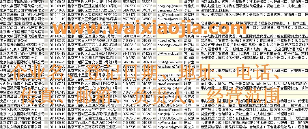 北京貨運代理公司名單數據為Excel格式,信息可任意修改、復制、打印、導出及導入到傳真、郵件群發(fā)等軟件中,無任何限制。