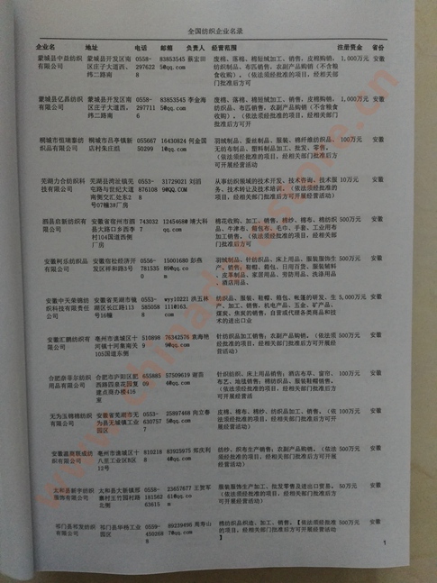 紡織企業(yè)黃頁(yè)收錄了最新的紡織企業(yè)名單,具有極高的營(yíng)銷價(jià)值,實(shí)實(shí)在在提高銷售業(yè)績(jī)