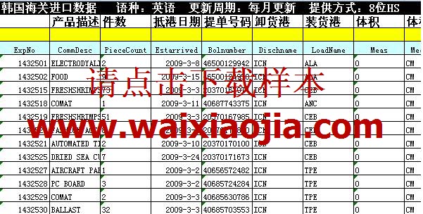 韓國海關(guān)進出口數(shù)據(jù)(KRCD)共有10個字段(10列,EXCEL格式),含韓國進口商(出口商)當月產(chǎn)品進口(出口)貿(mào)易額排序,及其聯(lián)系方式等