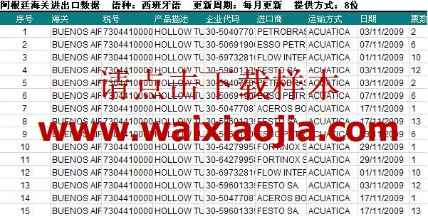 阿根廷海關(guān)數(shù)據(jù)