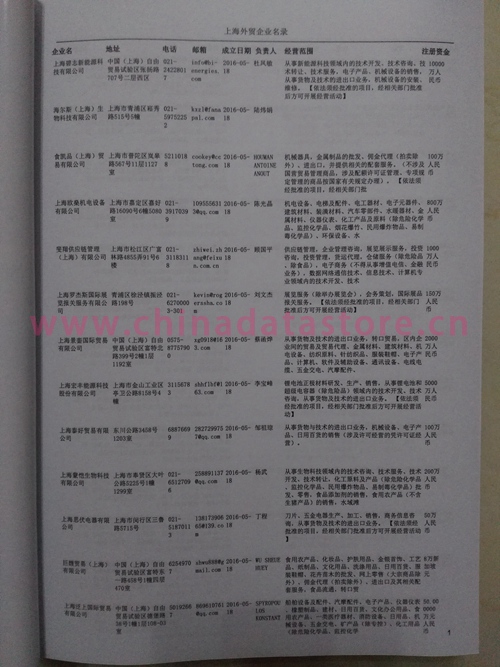 2021版最新上海企業(yè)黃頁包括《上海制造企業(yè)黃頁》、《上海貿(mào)易企業(yè)黃頁》、《上海民營企業(yè)黃頁》、《上海外資企業(yè)黃頁》、《上海外貿(mào)企業(yè)黃頁》共五冊,現(xiàn)優(yōu)惠價(jià):280元/冊。每冊內(nèi)容包括:單位名稱、地址、郵編、電話、傳真、郵箱、經(jīng)營范圍等;上海企業(yè)黃頁涵蓋了近幾年來最新成立的、有一定規(guī)模的企業(yè),具有非常高的營銷價(jià)值。有了這套黃頁開展業(yè)務(wù)也有了針對性,也省去了盲目去尋找客戶名單而浪費(fèi)的時(shí)間了,工作效率也會有很大的提高。歡迎需要上海企業(yè)黃頁的朋友及時(shí)聯(lián)系我們!