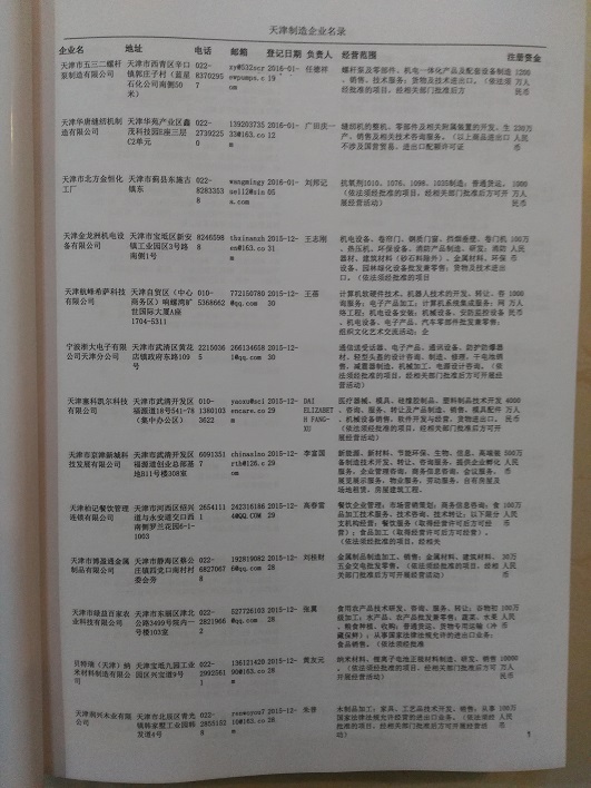 2021版最新天津企業(yè)黃頁包括《天津制造企業(yè)黃頁》、《天津貿(mào)易企業(yè)黃頁》、《天津民營(yíng)企業(yè)黃頁》、《天津外資企業(yè)黃頁》、《天津外貿(mào)企業(yè)黃頁》共五冊(cè),現(xiàn)優(yōu)惠價(jià):280元/冊(cè)。每?jī)?cè)內(nèi)容包括:?jiǎn)挝幻Q、地址、郵編、電話、傳真、郵箱、經(jīng)營(yíng)范圍等;天津企業(yè)黃頁涵蓋了近幾年來最新成立的、有一定規(guī)模的企業(yè),具有非常高的營(yíng)銷價(jià)值。有了這套黃頁開展業(yè)務(wù)也有了針對(duì)性,也省去了盲目去尋找客戶名單而浪費(fèi)的時(shí)間了,工作效率也會(huì)有很大的提高。歡迎需要天津企業(yè)黃頁的朋友及時(shí)聯(lián)系我們!