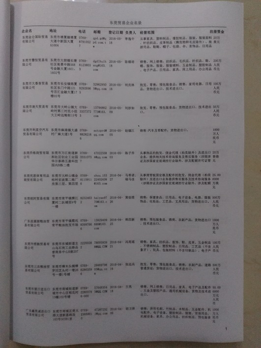 2021版最新東莞企業(yè)黃頁包括《東莞制造企業(yè)黃頁》、《東莞貿(mào)易企業(yè)黃頁》、《東莞民營企業(yè)黃頁》、《東莞外資企業(yè)黃頁》、《東莞外貿(mào)企業(yè)黃頁》共五冊(cè),現(xiàn)優(yōu)惠價(jià):280元/冊(cè)。每?jī)?cè)內(nèi)容包括:?jiǎn)挝幻Q、地址、郵編、電話、傳真、郵箱、經(jīng)營范圍等;東莞企業(yè)黃頁涵蓋了近幾年來最新成立的、有一定規(guī)模的企業(yè),具有非常高的營銷價(jià)值。有了這套黃頁開展業(yè)務(wù)也有了針對(duì)性,也省去了盲目去尋找客戶名單而浪費(fèi)的時(shí)間了,工作效率也會(huì)有很大的提高。歡迎需要東莞企業(yè)黃頁的朋友及時(shí)聯(lián)系我們!