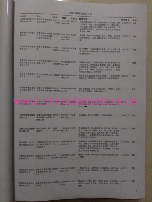 冶煉鑄造企業(yè)黃頁收錄了最新的冶煉鑄造企業(yè)名單,具有極高的營銷價值,實實在在提高銷售業(yè)績