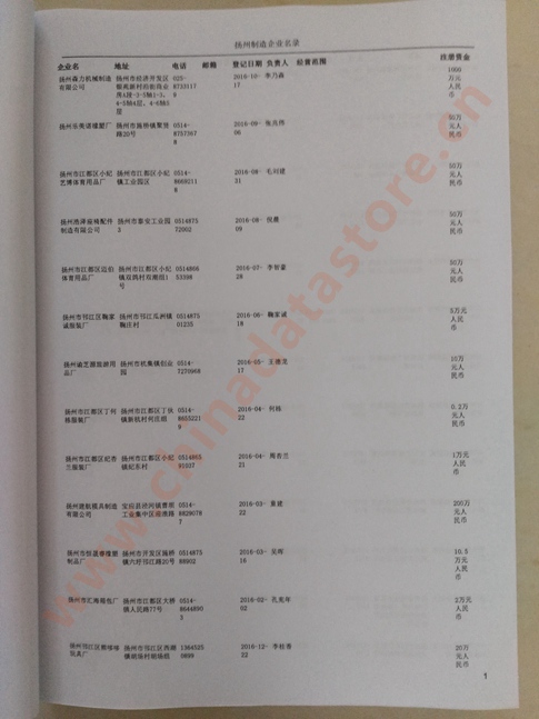 2021版最新?lián)P州企業(yè)黃頁(yè)包括《揚(yáng)州制造企業(yè)黃頁(yè)》、《揚(yáng)州貿(mào)易企業(yè)黃頁(yè)》、《揚(yáng)州民營(yíng)企業(yè)黃頁(yè)》、《揚(yáng)州外資企業(yè)黃頁(yè)》、《揚(yáng)州外貿(mào)企業(yè)黃頁(yè)》共五冊(cè),現(xiàn)優(yōu)惠價(jià):280元/冊(cè)。每?jī)?cè)內(nèi)容包括:?jiǎn)挝幻Q(chēng)、地址、郵編、電話(huà)、傳真、郵箱、經(jīng)營(yíng)范圍等;揚(yáng)州企業(yè)黃頁(yè)涵蓋了近幾年來(lái)最新成立的、有一定規(guī)模的企業(yè),具有非常高的營(yíng)銷(xiāo)價(jià)值。有了這套黃頁(yè)開(kāi)展業(yè)務(wù)也有了針對(duì)性,也省去了盲目去尋找客戶(hù)名單而浪費(fèi)的時(shí)間了,工作效率也會(huì)有很大的提高。歡迎需要揚(yáng)州企業(yè)黃頁(yè)的朋友及時(shí)聯(lián)系我們!
