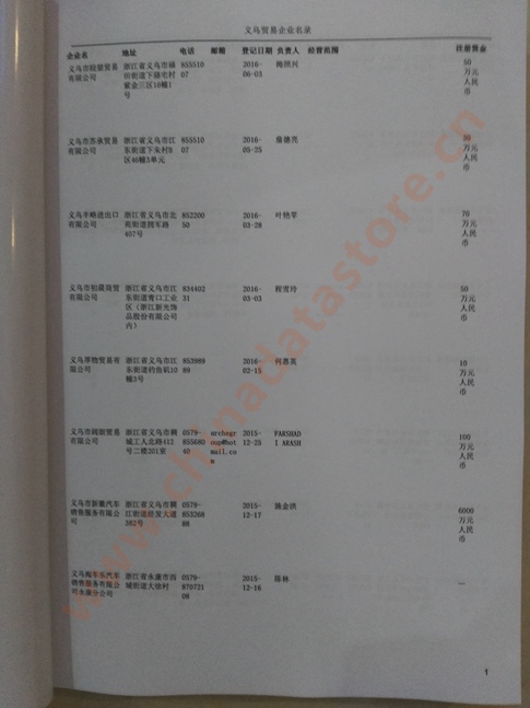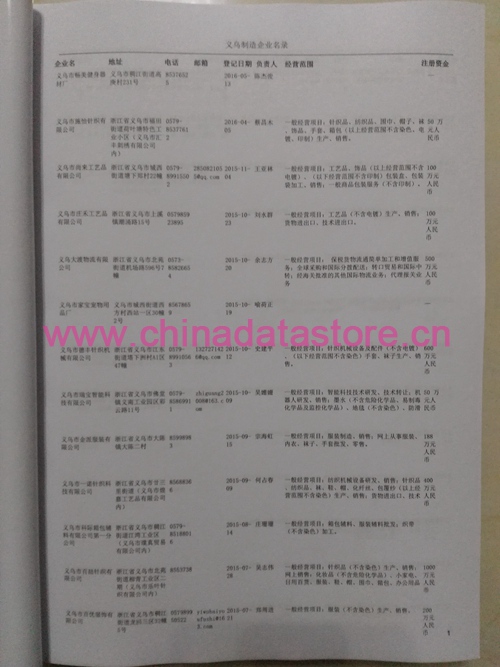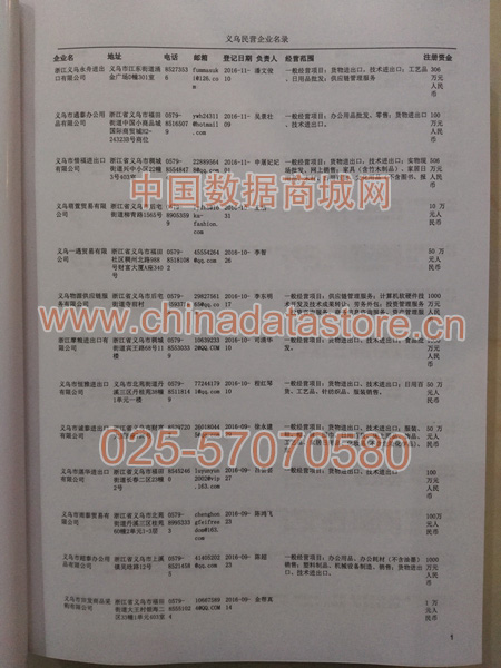 2021版最新義烏企業(yè)黃頁包括《義烏制造企業(yè)黃頁》、《義烏貿(mào)易企業(yè)黃頁》、《義烏民營企業(yè)黃頁》、《義烏外資企業(yè)黃頁》、《義烏外貿(mào)企業(yè)黃頁》共五冊,現(xiàn)優(yōu)惠價(jià):280元/冊。每冊內(nèi)容包括:單位名稱、地址、郵編、電話、傳真、郵箱、經(jīng)營范圍等;義烏企業(yè)黃頁涵蓋了近幾年來最新成立的、有一定規(guī)模的企業(yè),具有非常高的營銷價(jià)值。有了這套黃頁開展業(yè)務(wù)也有了針對性,也省去了盲目去尋找客戶名單而浪費(fèi)的時(shí)間了,工作效率也會有很大的提高。歡迎需要義烏企業(yè)黃頁的朋友及時(shí)聯(lián)系我們!