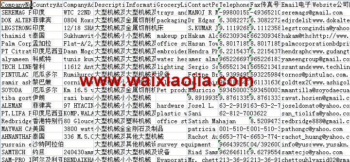 114屆廣交會采購商名單數(shù)據(jù)為Excel格式,信息可任意修改、復(fù)制、打印、導(dǎo)出及導(dǎo)入到傳真、郵件群發(fā)等軟件中,無任何限制。