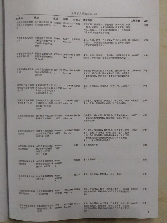 2024年新版中國(guó)家具采購(gòu)企業(yè)黃頁,收錄了全國(guó)各地經(jīng)營(yíng)范圍涉及家具產(chǎn)品的貿(mào)易企業(yè),這些都是頗具實(shí)力的家具產(chǎn)品的中國(guó)采購(gòu)商。黃頁內(nèi)容包含:企業(yè)名稱、地址、電話、傳真、郵箱、經(jīng)營(yíng)范圍、省份、注冊(cè)資金等信息。該套黃頁包含一個(gè)黃頁光碟加一冊(cè)紙質(zhì)書刊,全國(guó)價(jià)格:1500元元,省/直轄市價(jià)格:400元元,城市價(jià)格:200元,共收錄了全國(guó)各地大概28419(統(tǒng)計(jì)日期:2018.1)家具產(chǎn)品采購(gòu)企業(yè)。黃頁光碟中是EXCEL格式,信息可任意修改、復(fù)制、打印、導(dǎo)出及導(dǎo)入到傳真、郵件群發(fā)等軟件中,無任何限制。