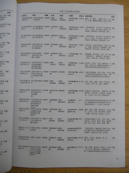2024年新版中國(guó)工藝品采購(gòu)企業(yè)黃頁(yè),收錄了全國(guó)各地經(jīng)營(yíng)范圍涉及工藝品產(chǎn)品的貿(mào)易企業(yè),這些都是頗具實(shí)力的工藝品產(chǎn)品的中國(guó)采購(gòu)商。黃頁(yè)內(nèi)容包含:企業(yè)名稱、地址、電話、傳真、郵箱、經(jīng)營(yíng)范圍、省份、注冊(cè)資金等信息。該套黃頁(yè)包含一個(gè)黃頁(yè)光碟加一冊(cè)紙質(zhì)書(shū)刊,全國(guó)價(jià)格:1500元,省/直轄市價(jià)格:400元,城市價(jià)格:200元,共收錄了全國(guó)各地大概7451(統(tǒng)計(jì)日期:2018.1)家工藝品產(chǎn)品采購(gòu)企業(yè)。黃頁(yè)光碟中是EXCEL格式,信息可任意修改、復(fù)制、打印、導(dǎo)出及導(dǎo)入到傳真、郵件群發(fā)等軟件中,無(wú)任何限制。