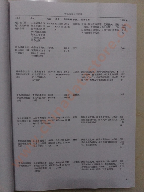 青島貨運(yùn)代理公司名單數(shù)據(jù)為Excel格式,信息可任意修改、復(fù)制、打印、導(dǎo)出及導(dǎo)入到傳真、郵件群發(fā)等軟件中,無任何限制。