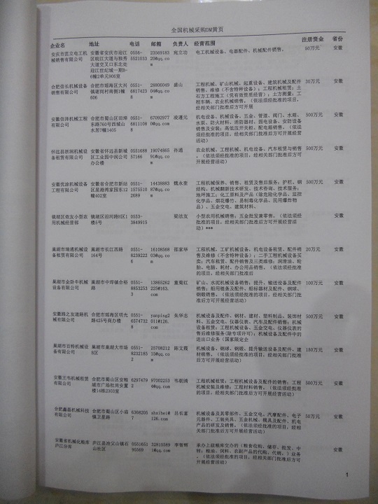 2024年新版中國機械采購企業(yè)黃頁,收錄了全國各地經(jīng)營范圍涉及機械產品的貿易企業(yè),這些都是頗具實力的機械產品的中國采購商。黃頁內容包含:企業(yè)名稱、地址、電話、傳真、郵箱、經(jīng)營范圍、省份、注冊資金等信息。該套黃頁包含一個黃頁光碟加一冊紙質書刊,全國價格:1500元,省/直轄市價格:400元,城市價格:200元,共收錄了全國各地大概63139(統(tǒng)計日期:2018.1)家機械產品采購企業(yè)。黃頁光碟中是EXCEL格式,信息可任意修改、復制、打印、導出及導入到傳真、郵件群發(fā)等軟件中,無任何限制。