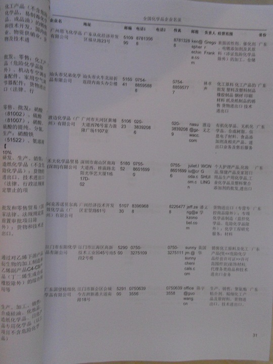 某個(gè)城市 如深圳、南京化學(xué)品企業(yè)黃頁(yè) 90% 200元 無(wú)