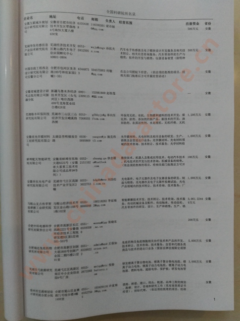 某個(gè)城市 如深圳、南京科研院所企業(yè)黃頁(yè) 80% - 90% 300元 無(wú)