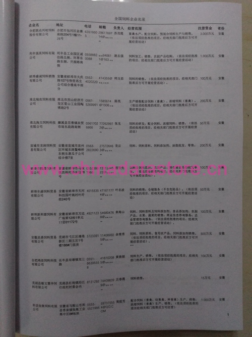 飼料企業(yè)黃頁(yè)收錄了最新的飼料企業(yè)名單,具有極高的營(yíng)銷價(jià)值,實(shí)實(shí)在在提高銷售業(yè)績(jī)