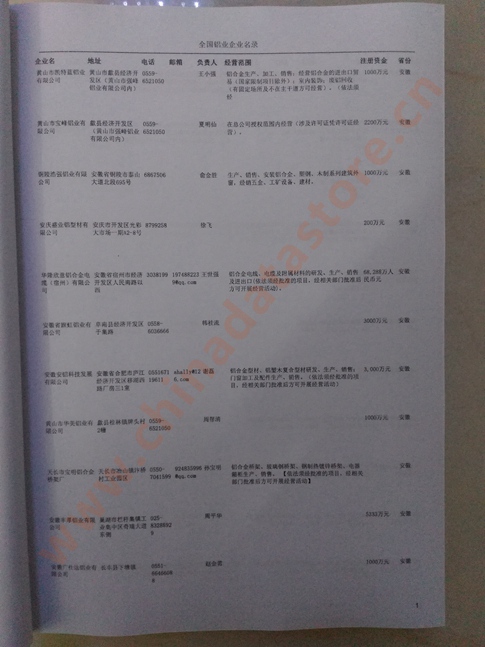 | 某省或直轄市 | 如上海、浙江鋁業(yè)企業(yè)名單 | 80% - 90% | 600元 | 附贈(zèng)一冊(cè)鋁業(yè)黃頁印刷品 |