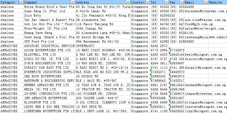 新加坡企業(yè)黃頁,格式EXCEL。數(shù)量超過19萬家。