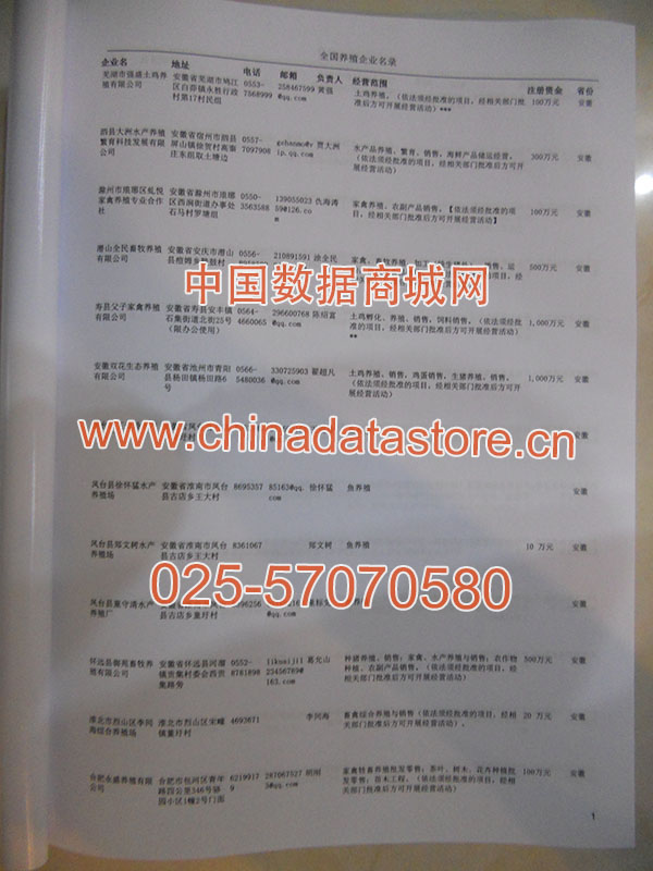 某省或直轄市 如上海、浙江養(yǎng)殖企業(yè)名單  80% - 90% 600元 附贈一冊養(yǎng)殖紙質(zhì)印刷品