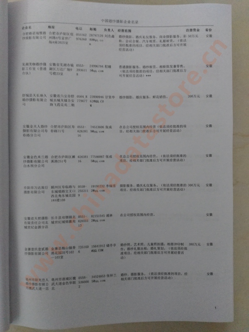 某省或直轄市 如上海、浙江婚紗攝影企業(yè)名單  80% - 90% 600元 附贈一冊婚紗攝影紙質(zhì)印刷品