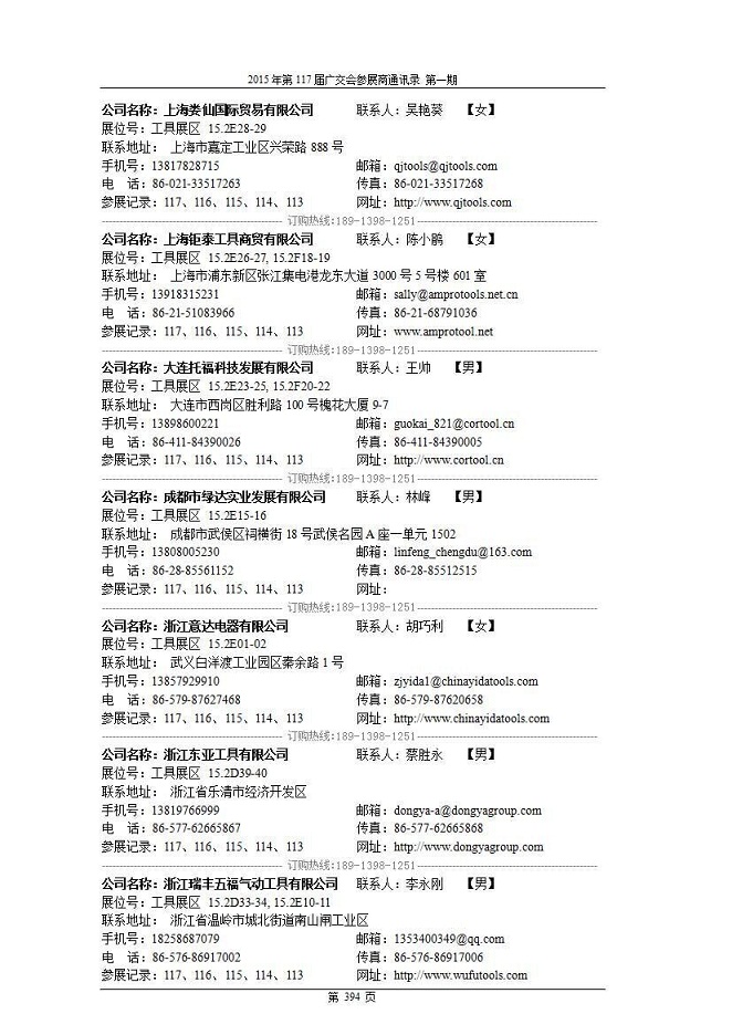 第117屆廣交會參展商內(nèi)部通訊錄