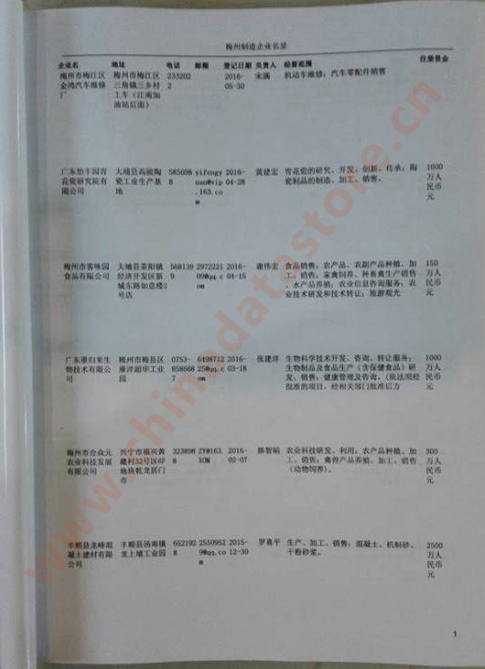 2021版最新梅州企業(yè)黃頁包括《梅州制造企業(yè)黃頁》、《梅州民營企業(yè)黃頁》,現(xiàn)優(yōu)惠價(jià):280元/冊。每冊內(nèi)容包括:單位名稱、地址、郵編、電話、傳真、郵箱、經(jīng)營范圍等;梅州企業(yè)黃頁涵蓋了近幾年來最新成立的、有一定規(guī)模的企業(yè),具有非常高的營銷價(jià)值。有了這套黃頁開展業(yè)務(wù)也有了針對性,也省去了盲目去尋找客戶名單而浪費(fèi)的時(shí)間了,工作效率也會有很大的提高。歡迎需要梅州企業(yè)黃頁的朋友及時(shí)聯(lián)系我們!