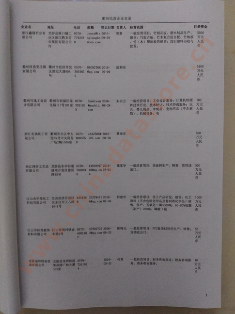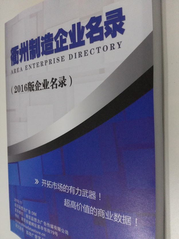 2021版最新衢州企業(yè)黃頁包括《衢州制造企業(yè)黃頁》、《衢州民營企業(yè)黃頁》,現(xiàn)優(yōu)惠價:280元/冊。每冊內(nèi)容包括:單位名稱、地址、郵編、電話、傳真、郵箱、經(jīng)營范圍等;衢州企業(yè)黃頁涵蓋了近幾年來最新成立的、有一定規(guī)模的企業(yè),具有非常高的營銷價值。有了這套黃頁開展業(yè)務(wù)也有了針對性,也省去了盲目去尋找客戶名單而浪費的時間了,工作效率也會有很大的提高。歡迎需要衢州企業(yè)黃頁的朋友及時聯(lián)系我們!