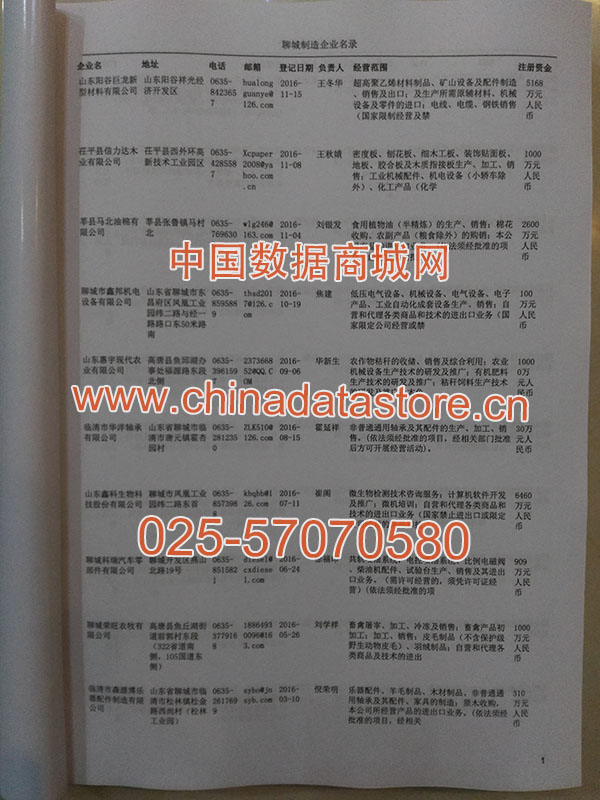 2021版最新聊城企業(yè)黃頁包括《聊城制造企業(yè)黃頁》、《聊城民營企業(yè)黃頁》,現(xiàn)優(yōu)惠價(jià):280元/冊(cè)。每冊(cè)內(nèi)容包括:單位名稱、地址、郵編、電話、傳真、郵箱、經(jīng)營范圍等;聊城企業(yè)黃頁涵蓋了近幾年來最新成立的、有一定規(guī)模的企業(yè),具有非常高的營銷價(jià)值。有了這套黃頁開展業(yè)務(wù)也有了針對(duì)性,也省去了盲目去尋找客戶名單而浪費(fèi)的時(shí)間了,工作效率也會(huì)有很大的提高。歡迎需要聊城企業(yè)黃頁的朋友及時(shí)聯(lián)系我們!