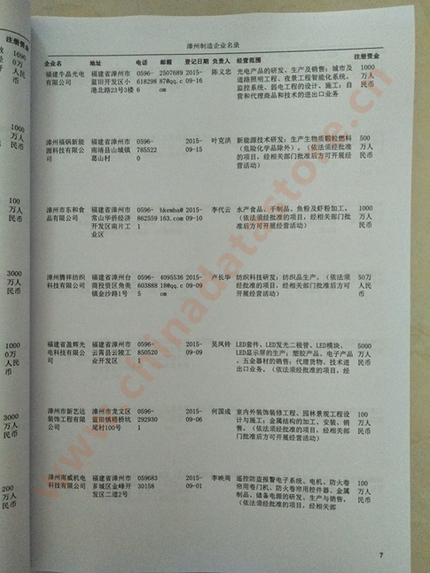 2021版最新漳州企業(yè)黃頁包括《漳州制造企業(yè)黃頁》、《漳州民營企業(yè)黃頁》,現(xiàn)優(yōu)惠價:280元/冊。每冊內(nèi)容包括:單位名稱、地址、郵編、電話、傳真、郵箱、經(jīng)營范圍等;漳州企業(yè)黃頁涵蓋了近幾年來最新成立的、有一定規(guī)模的企業(yè),具有非常高的營銷價值。有了這套黃頁開展業(yè)務也有了針對性,也省去了盲目去尋找客戶名單而浪費的時間了,工作效率也會有很大的提高。歡迎需要漳州企業(yè)黃頁的朋友及時聯(lián)系我們!