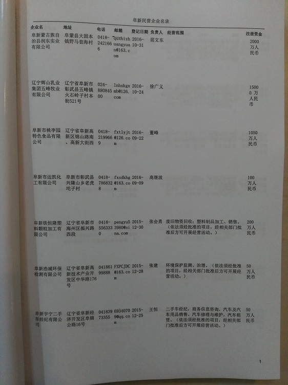 2021版最新阜新企業(yè)黃頁包括《阜新制造企業(yè)黃頁》、《阜新民營企業(yè)黃頁》,現(xiàn)優(yōu)惠價:280元/冊。每冊內(nèi)容包括:單位名稱、地址、郵編、電話、傳真、郵箱、經(jīng)營范圍等;阜新企業(yè)黃頁涵蓋了近幾年來最新成立的、有一定規(guī)模的企業(yè),具有非常高的營銷價值。有了這套黃頁開展業(yè)務(wù)也有了針對性,也省去了盲目去尋找客戶名單而浪費的時間了,工作效率也會有很大的提高。歡迎需要阜新企業(yè)黃頁的朋友及時聯(lián)系我們!