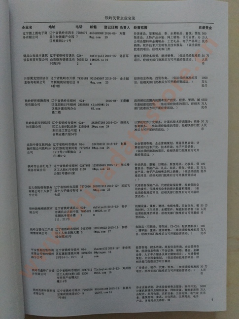 2021版最新鐵嶺企業(yè)黃頁包括《鐵嶺制造企業(yè)黃頁》、《鐵嶺民營企業(yè)黃頁》,現優(yōu)惠價:280元/冊。每冊內容包括:單位名稱、地址、郵編、電話、傳真、郵箱、經營范圍等;鐵嶺企業(yè)黃頁涵蓋了近幾年來最新成立的、有一定規(guī)模的企業(yè),具有非常高的營銷價值。有了這套黃頁開展業(yè)務也有了針對性,也省去了盲目去尋找客戶名單而浪費的時間了,工作效率也會有很大的提高。歡迎需要鐵嶺企業(yè)黃頁的朋友及時聯系我們!