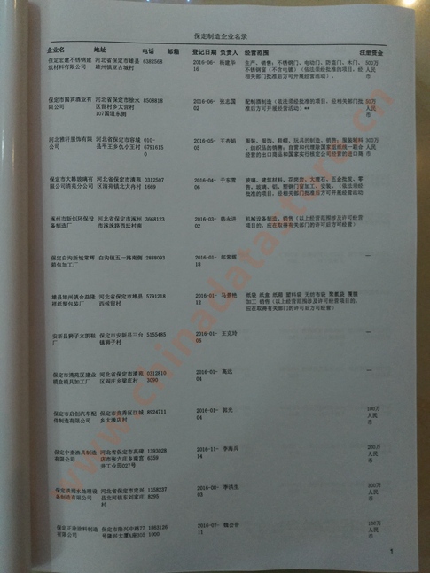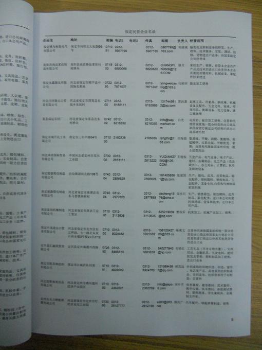 2021版最新保定企業(yè)黃頁包括《保定制造企業(yè)黃頁》、《保定民營企業(yè)黃頁》,現(xiàn)優(yōu)惠價:280元/冊。每冊內容包括:單位名稱、地址、郵編、電話、傳真、郵箱、經營范圍等;保定企業(yè)黃頁涵蓋了近幾年來最新成立的、有一定規(guī)模的企業(yè),具有非常高的營銷價值。有了這套黃頁開展業(yè)務也有了針對性,也省去了盲目去尋找客戶名單而浪費的時間了,工作效率也會有很大的提高。歡迎需要保定企業(yè)黃頁的朋友及時聯(lián)系我們!