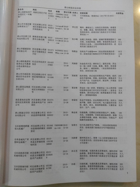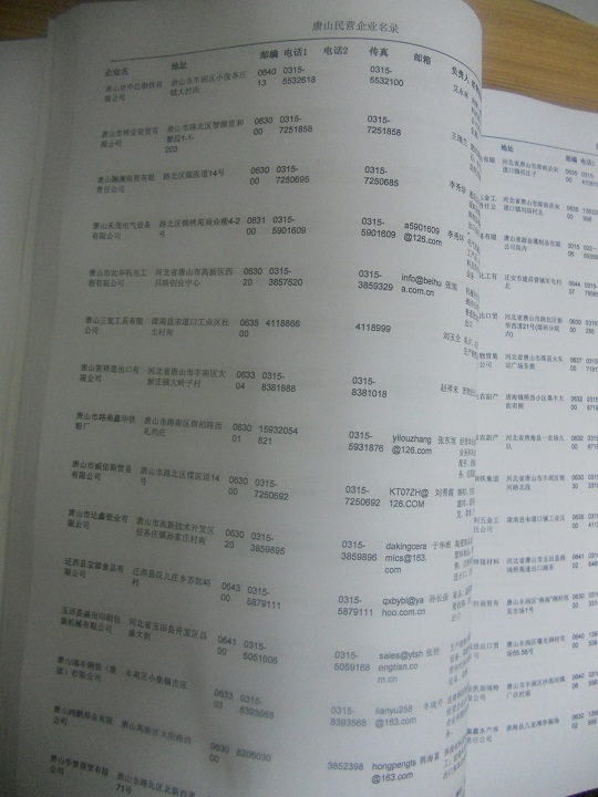 2021版最新唐山企業(yè)黃頁包括《唐山制造企業(yè)黃頁》、《唐山民營企業(yè)黃頁》,現(xiàn)優(yōu)惠價:280元/冊。每冊內(nèi)容包括:單位名稱、地址、郵編、電話、傳真、郵箱、經(jīng)營范圍等;唐山企業(yè)黃頁涵蓋了近幾年來最新成立的、有一定規(guī)模的企業(yè),具有非常高的營銷價值。有了這套黃頁開展業(yè)務也有了針對性,也省去了盲目去尋找客戶名單而浪費的時間了,工作效率也會有很大的提高。歡迎需要唐山企業(yè)黃頁的朋友及時聯(lián)系我們!