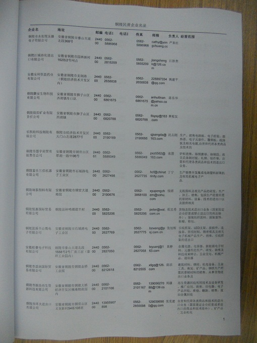 2021版最新銅陵企業(yè)黃頁(yè)包括《銅陵制造企業(yè)黃頁(yè)》、《銅陵民營(yíng)企業(yè)黃頁(yè)》,現(xiàn)優(yōu)惠價(jià):280元/冊(cè)。每?jī)?cè)內(nèi)容包括:?jiǎn)挝幻Q、地址、郵編、電話、傳真、郵箱、經(jīng)營(yíng)范圍等;銅陵企業(yè)黃頁(yè)涵蓋了近幾年來(lái)最新成立的、有一定規(guī)模的企業(yè),具有非常高的營(yíng)銷價(jià)值。有了這套黃頁(yè)開(kāi)展業(yè)務(wù)也有了針對(duì)性,也省去了盲目去尋找客戶名單而浪費(fèi)的時(shí)間了,工作效率也會(huì)有很大的提高。歡迎需要銅陵企業(yè)黃頁(yè)的朋友及時(shí)聯(lián)系我們!