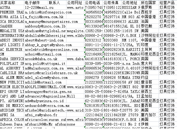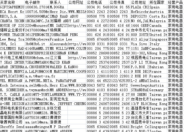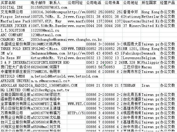 117屆廣交會(huì)采購(gòu)商名單數(shù)據(jù)為Excel格式,信息可任意修改、復(fù)制、打印、導(dǎo)出及導(dǎo)入到傳真、郵件群發(fā)等軟件中,無(wú)任何限制。