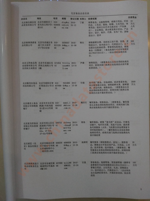 北京食品企業(yè)精準(zhǔn)名錄