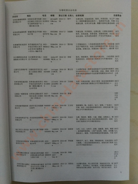 2021版最新長春企業(yè)黃頁包括《長春制造企業(yè)黃頁》、《長春民營企業(yè)黃頁》,現(xiàn)優(yōu)惠價:280元/冊。每冊內(nèi)容包括:單位名稱、地址、郵編、電話、傳真、郵箱、經(jīng)營范圍等;長春企業(yè)黃頁涵蓋了近幾年來最新成立的、有一定規(guī)模的企業(yè),具有非常高的營銷價值。有了這套黃頁開展業(yè)務也有了針對性,也省去了盲目去尋找客戶名單而浪費的時間了,工作效率也會有很大的提高。歡迎需要長春企業(yè)黃頁的朋友及時聯(lián)系我們!