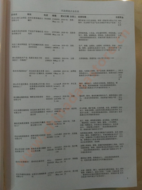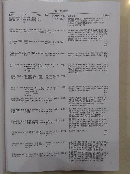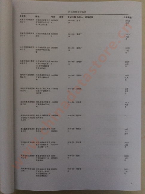 2021版最新河北企業(yè)黃頁包括《河北制造企業(yè)黃頁》、《河北貿(mào)易企業(yè)黃頁》、《河北民營企業(yè)黃頁》共三冊,優(yōu)惠價:280元/冊。每冊內(nèi)容包括:單位名稱、地址、郵編、電話、傳真、郵箱、經(jīng)營范圍等;河北企業(yè)黃頁涵蓋了近幾年來最新成立的、有一定規(guī)模的企業(yè),具有非常高的營銷價值。有了這套黃頁開展業(yè)務(wù)也有了針對性,也省去了盲目去尋找客戶名單而浪費(fèi)的時間了,工作效率也會有很大的提高。歡迎需要河北企業(yè)黃頁的朋友及時聯(lián)系我們!