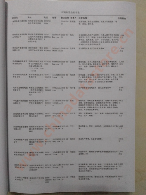 2021版最新河南企業(yè)黃頁(yè)包括《河南制造企業(yè)黃頁(yè)》、《河南貿(mào)易企業(yè)黃頁(yè)》、《河南民營(yíng)企業(yè)黃頁(yè)》共三冊(cè),優(yōu)惠價(jià):280元/冊(cè)。每?jī)?cè)內(nèi)容包括:?jiǎn)挝幻Q(chēng)、地址、郵編、電話、傳真、郵箱、經(jīng)營(yíng)范圍等;河南企業(yè)黃頁(yè)涵蓋了近幾年來(lái)最新成立的、有一定規(guī)模的企業(yè),具有非常高的營(yíng)銷(xiāo)價(jià)值。有了這套黃頁(yè)開(kāi)展業(yè)務(wù)也有了針對(duì)性,也省去了盲目去尋找客戶(hù)名單而浪費(fèi)的時(shí)間了,工作效率也會(huì)有很大的提高。歡迎需要河南企業(yè)黃頁(yè)的朋友及時(shí)聯(lián)系我們!