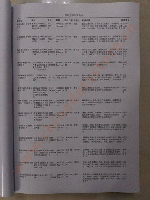 2021版最新湖南企業(yè)黃頁包括《湖南制造企業(yè)黃頁》、《湖南貿(mào)易企業(yè)黃頁》、《湖南民營企業(yè)黃頁》共三冊(cè),優(yōu)惠價(jià):280元/冊(cè)。每冊(cè)內(nèi)容包括:單位名稱、地址、郵編、電話、傳真、郵箱、經(jīng)營范圍等;湖南企業(yè)黃頁涵蓋了近幾年來最新成立的、有一定規(guī)模的企業(yè),具有非常高的營銷價(jià)值。有了這套黃頁開展業(yè)務(wù)也有了針對(duì)性,也省去了盲目去尋找客戶名單而浪費(fèi)的時(shí)間了,工作效率也會(huì)有很大的提高。歡迎需要湖南企業(yè)黃頁的朋友及時(shí)聯(lián)系我們!