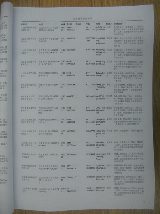 2021版最新遼寧企業(yè)黃頁包括《遼寧制造企業(yè)黃頁》、《遼寧貿(mào)易企業(yè)黃頁》、《遼寧民營企業(yè)黃頁》共三冊,優(yōu)惠價:280元/冊。每冊內(nèi)容包括:單位名稱、地址、郵編、電話、傳真、郵箱、經(jīng)營范圍等;遼寧企業(yè)黃頁涵蓋了近幾年來最新成立的、有一定規(guī)模的企業(yè),具有非常高的營銷價值。有了這套黃頁開展業(yè)務(wù)也有了針對性,也省去了盲目去尋找客戶名單而浪費(fèi)的時間了,工作效率也會有很大的提高。歡迎需要遼寧企業(yè)黃頁的朋友及時聯(lián)系我們!