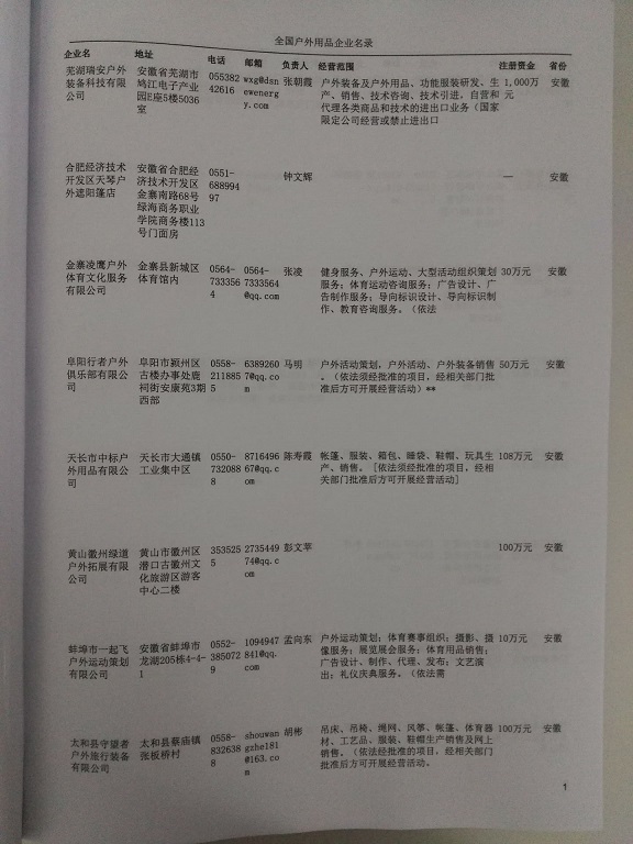 某省或直轄市 如上海、浙江戶(hù)外用品企業(yè)名單  80% - 90% 600元 附贈(zèng)一冊(cè)戶(hù)外用品紙質(zhì)印刷品
