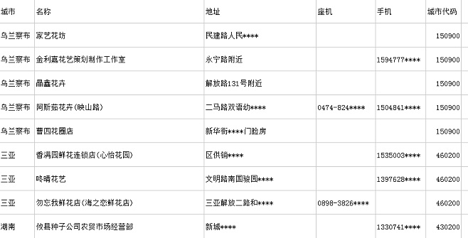 數(shù)據(jù)介紹:包含字段:城市、名稱、地址、座機、手機、城市代碼