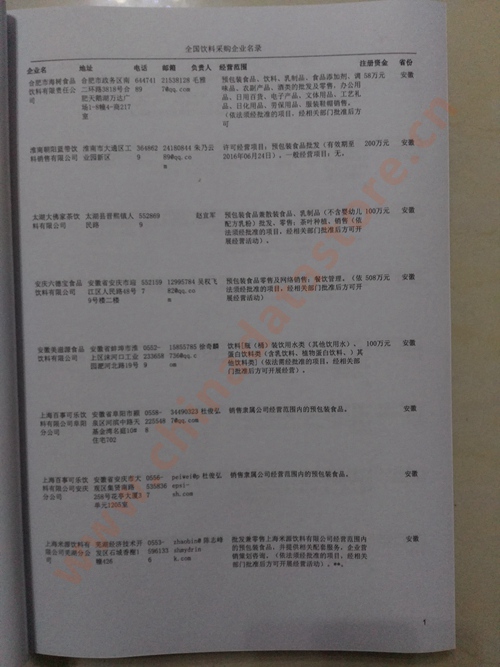 2024年新版中國飲料采購企業(yè)黃頁,收錄了全國各地經(jīng)營范圍涉及飲料產(chǎn)品的貿(mào)易企業(yè),這些都是頗具實(shí)力的飲料產(chǎn)品的中國采購商。黃頁內(nèi)容包含:企業(yè)名稱、地址、電話、傳真、郵箱、經(jīng)營范圍、省份、注冊資金等信息。該套黃頁包含一個(gè)黃頁光碟加一冊紙質(zhì)書刊,價(jià)格是1200元,共收錄了全國各地大概10000家飲料產(chǎn)品采購企業(yè)。黃頁光碟中是EXCEL格式,信息可任意修改、復(fù)制、打印、導(dǎo)出及導(dǎo)入到傳真、郵件群發(fā)等軟件中,無任何限制。